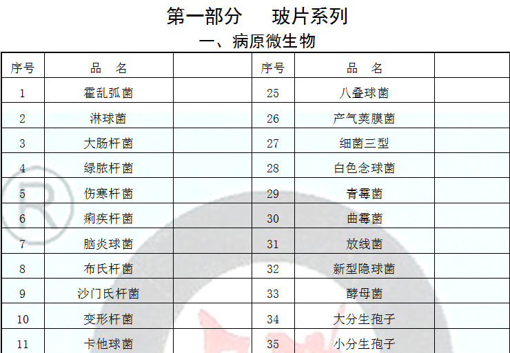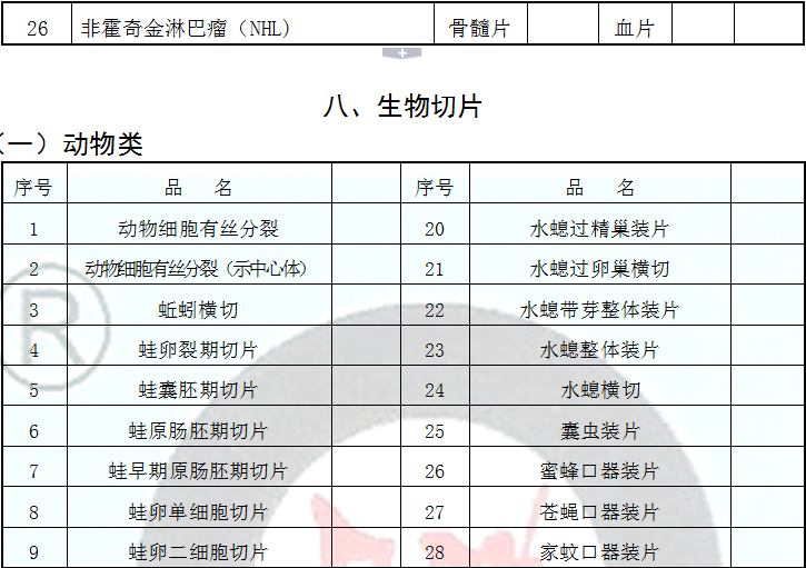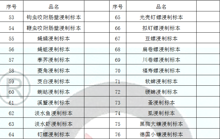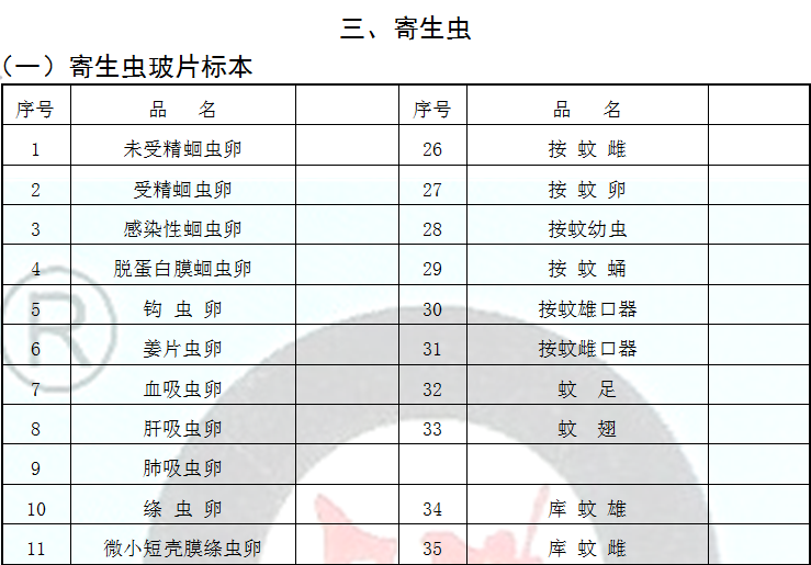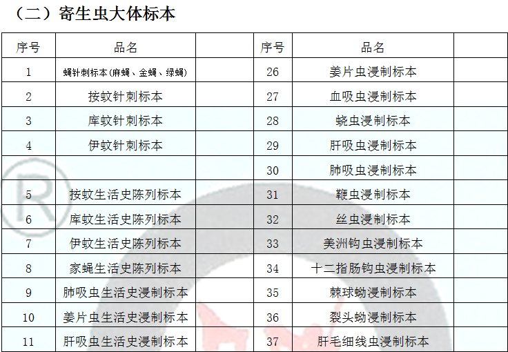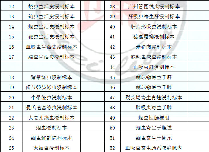 1 蠅針刺標(biāo)本(麻蠅、金蠅、綠蠅)   26 姜片蟲浸制標(biāo)本